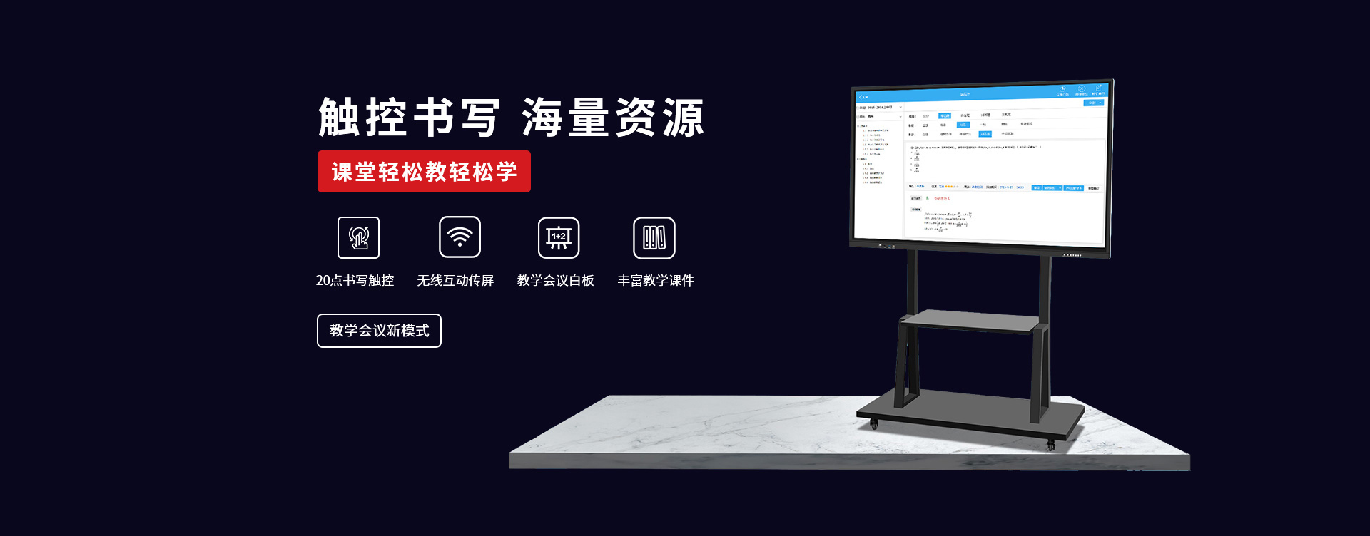 〔教育智慧黑板〕 是新一代教學(xué)顯示設(shè)備,具有高清顯示、高精度觸摸操作應(yīng)用,黑板書(shū)寫(xiě)教學(xué)功能與一身;內(nèi)置安卓、windows系統(tǒng),可滿(mǎn)足教學(xué)不同的應(yīng)用軟件使用;純平面書(shū)寫(xiě)黑板,適應(yīng)粉筆,無(wú)塵粉筆、水性粉筆書(shū)寫(xiě),適合不同環(huán)境應(yīng)用;觸摸切換書(shū)寫(xiě)黑板與屏幕顯示,可讓老師快速進(jìn)行教學(xué)應(yīng)用切換;純平面外觀(guān),解決傳統(tǒng)推拉黑板的笨重,復(fù)雜的結(jié)構(gòu)特點(diǎn),大大提升了教師授課的體驗(yàn)感和演示效果。